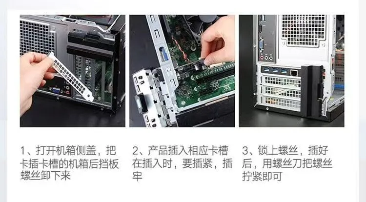 PC机的话,将万兆网卡插在主板PCIe插槽上,插入光模块和LC-LC光纤即可。