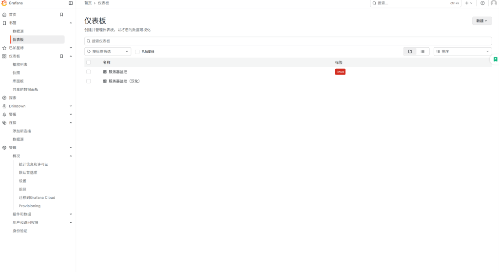 • Grafana:访问 http://服务器IP:3000(默认账号/密码:admin/admin)